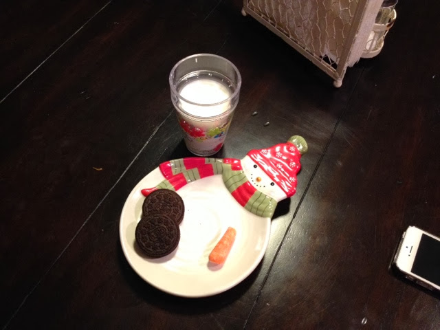 This is the first year we've put out cookies and milk for Santa and a carrot for the reindeer with Johnny. He thought it was awesome and in the morning when he saw the empty plate and cup he exclaimed, "They're gone! Santa ate them!"